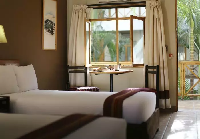 Hotellet har endast 25 rum, som är trivsamt inredda med mörka trämöbler. Samtliga rum har egen toalett/eget bad, wifi, värdeskåp och värmeelement, då det kan bli lite kyligt på nätterna.