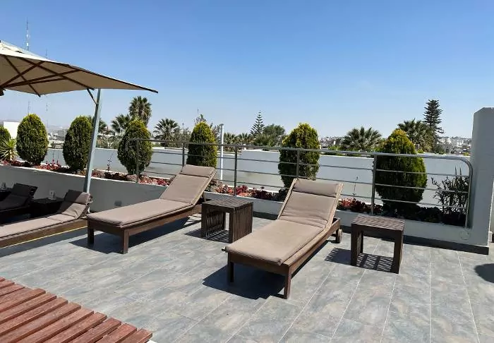 På takterrassen hittar du poolen, där du kan ta ett uppfriskande dopp och sedan koppla av i en solstol och släcka din törst med en läcker färskpressad juice. Njut av utsikten över staden och de magnifika vulkanerna, som imponerande stiger över horisonten och ibland släpper ut ett moln av rök.