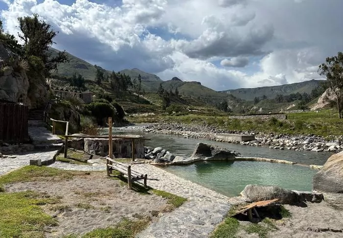 Colca Lodge har sina egna termiska bad, vilka är den perfekta utgångspunkten för dig som vill varva ner helt och hållet. Låt kroppen slappna av i det varma vattnet, medan du njuter av en kall dryck och ljudet av den forsande floden lugnar ditt sinne. Efteråt kan du ta en tupplur i en av solstolarna, som finns runt om trädgården mellan de färgglada quinoaplantorna. Lodgen har också privata termiska bad som du kan hyra.
