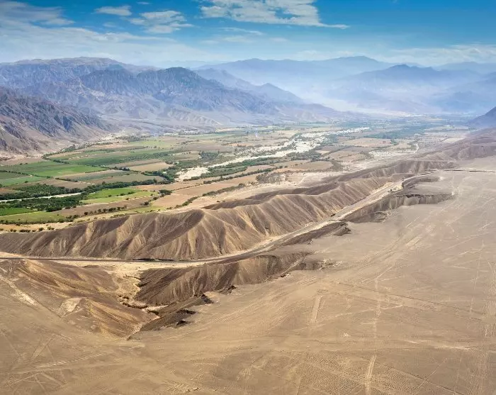 Den lilla staden Nazca ligger som en frodig grön oas omgiven av öken och höga dyner.