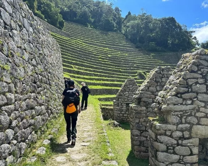 Du når det tredje passet på ca 3 600 meters höjd nära den välbevarade inkastaden Phuyupatamarca, vars quechua-namn betyder ”Staden över molnen” och syftar till stadens höga läge. Här kan du vila ut och njuta av din lunch med utsikt över den heliga inkadalen – Urubamba-dalen. Därefter börjar den långa nedstigningen till Wiñay Wayna, som är det största komplexet i området efter Machu Picchu och Llaqtapata. Ruinerna ligger uppe längs den ena bergssidan och består av hus, torn och terrasser. Komplexet har ett imponerande och vackert läge precis bakom ditt läger.