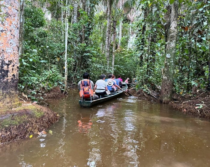 Varje dag bjuder på olika utflykter i små grupper med lokala guider, där du vandrar tillsammans genom den täta regnskogen och seglar nedströms på floden Madre de Dios. Här finns goda möjligheter att uppleva en mängd exotiska djur, från kajmaner, som tyst flyter med flodens ström till lekfulla apor som svingar sig bland trädtopparna.