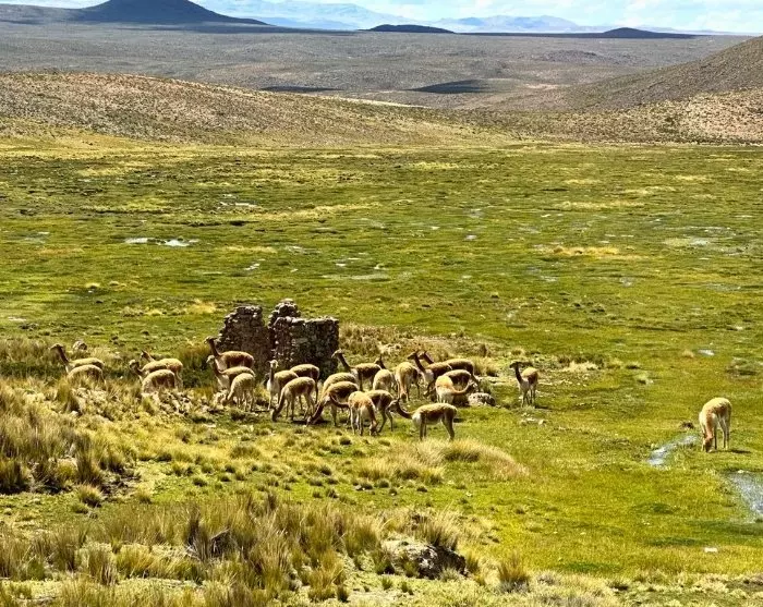 De följande dagarna får du verkligen uppleva de mäktiga Anderna. Du korsar den spektakulära högslätten Altiplano, som kännetecknas av sitt torra, gyllene landskap med stora öppna vidder där du kan se betande lamor och alpackor. På flera platser åker du på över 4 000 meters höjd. Det högsta passet och utsiktspunkten på rutten heter Mirador de los volcanes, och härifrån har du vid klart väder en fantastisk utsikt över de omkringliggande vulkanerna. Utsiktspunkten ligger på cirka 4 900 meters höjd och du märker genast att den tunna luften här påverkar din andning. Därför blir det bara ett kort fotostopp innan resan går vidare ner mot staden Chivay, som fungerar som ingång till Colca Canyon.