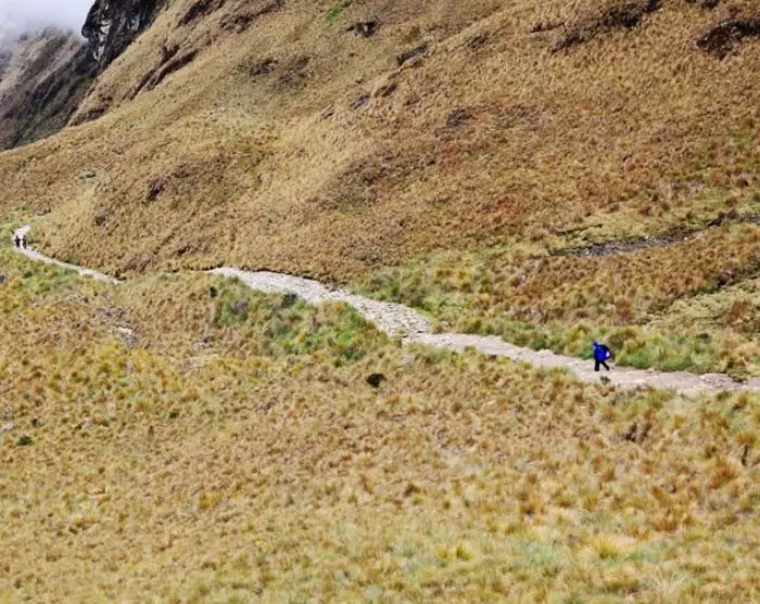 I dag är den tuffaste dagen på vandringen. Du vandrar först upp till Llulluchapampa genom ett område med frodig molnregnskog. Därefter börjar en brant stigning mot det ca 4 200 meter höga Warmiwañusqa-passet som är den högsta punkten på vandringen. Passets namn är ett quechua-ord som betyder ”Den döda kvinnans pass” och refererar till klippformationerna vid passet. På toppen kan du ta en välförtjänt paus medan du njuter av utsikten över de snöklädda bergen och inkaleden.