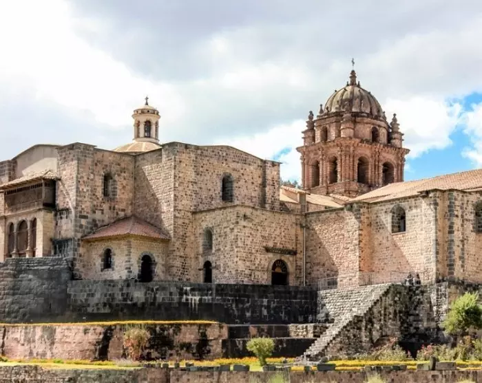 Det är också här du hittar Cuscos katedral, som byggdes med sten från inkakomplexet Sacsayhuamán ovanpå inkapalatset Viracochas Palads under kolonialtiden. Katedralen är en fin blandning av spansk renässansarkitektur och inkaindianernas mästerliga stenarbete. Gatan vid sidan om katedralen leder till Santo Domingo-kyrkan, som är byggd ovanpå det som en gång var inkarikets viktigaste tempel, Koricancha. Det tidigare storslagna soltemplet utgör kyrkans fundament och byggdes utan murbruk, men varje enskild sten passar perfekt in i konstruktionen.