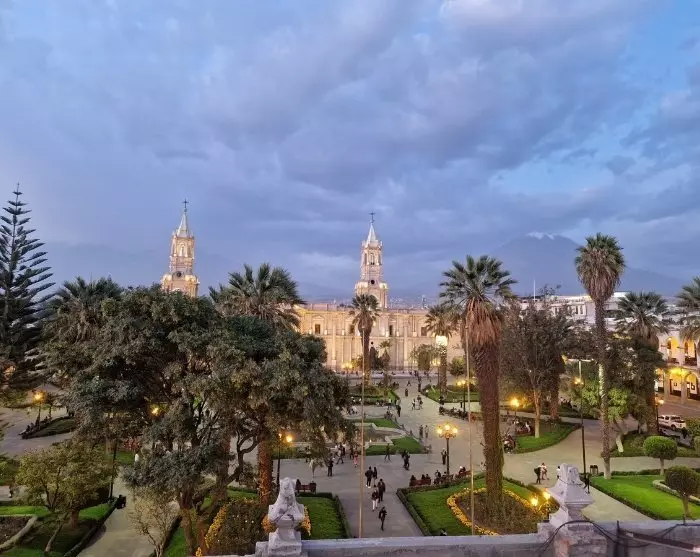 Sista stoppet på resan är Yanahuara-torget, där det finns goda möjligheter att ta vackra bilder av stadens imponerande vulkaniska omgivningar.