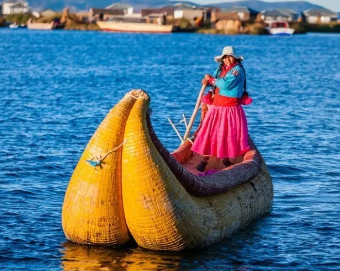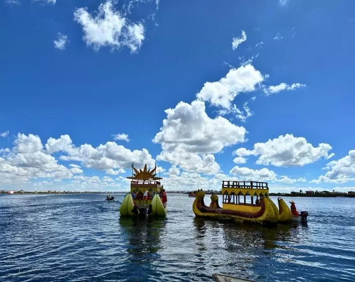 Från stadens hamn seglar du först ut till de flytande vassöarna, Islas Uros, som fortfarande bebos av urosfolket. Detta folk använder sjöns kostnadsfria byggmaterial, nämligen den starka totoravassen, för att bland annat bygger öar, hus och båtar. Även om öarna i dag har kommersialiserats något så är det fortfarande fascinerande att lära sig mer om urosfolkets kultur och gamla traditioner och inte minst att uppleva deras imponerande hantverk.