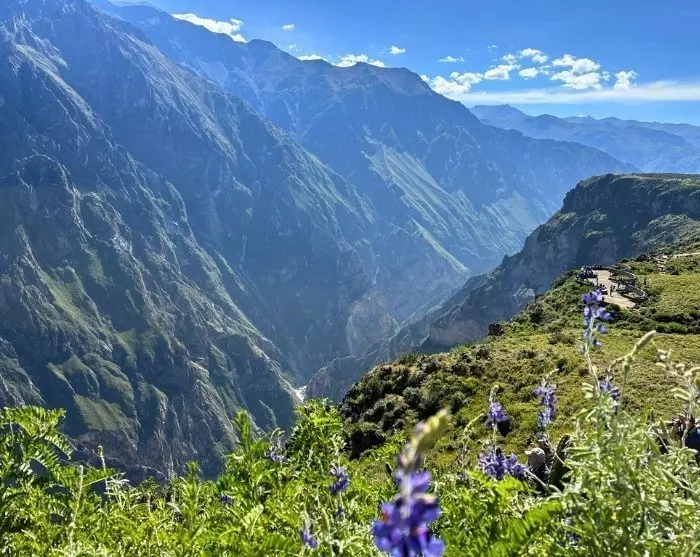 Tidigt denna morgon går resan mot Colca Canyon, som är 3 400 meter djup och faktiskt en av världens djupaste raviner. Jämförelsevis är den ungefär dubbelt så djup som Grand Canyon i USA.