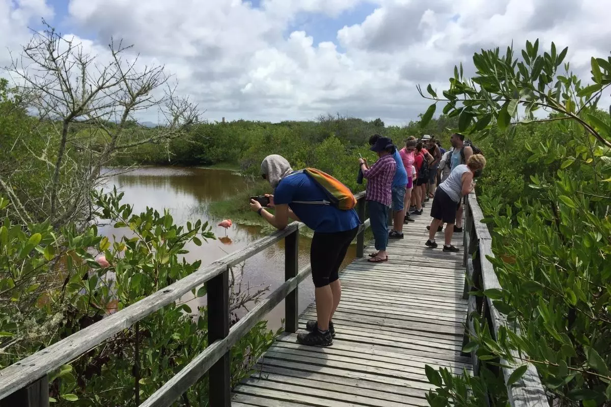 På eftermiddagen väntar en utflykt till några av Isabelas höjdpunkter. Turen börjar med ett besök på Arnaldo Tupiza sköldpaddsuppfödningscentret, som ligger strax utanför staden. Här arbetar frivilliga för att öka beståndet av landsköldpaddor på ön, och du får möjlighet att se hundratals landsköldpaddor i alla storlekar. Din guide tar dig även med in i ett spännande våtmarksområde där ni kan ha turen att se fåglar som styltlöpare, rörhöns och vitkindad and, samt de fascinerande flamingorna.