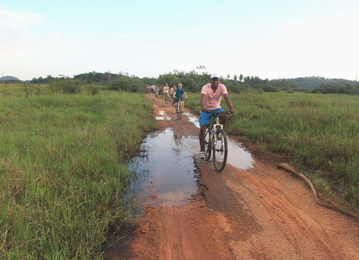 Sedan får du låna en cykel och ge dig ut på en härlig cykeltur genom byn. Vägen är platt, så de flesta kan delta. Cykelturen ger en bra inblick i hur man lever livet i en traditionell lankesisk by. På turen cyklar du bland annat förbi djungler, risodlingar och traditionella hus. Du stoppar vid en liten butik, där du köper grönsaker som ska användas till dagens lunch.
