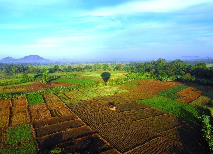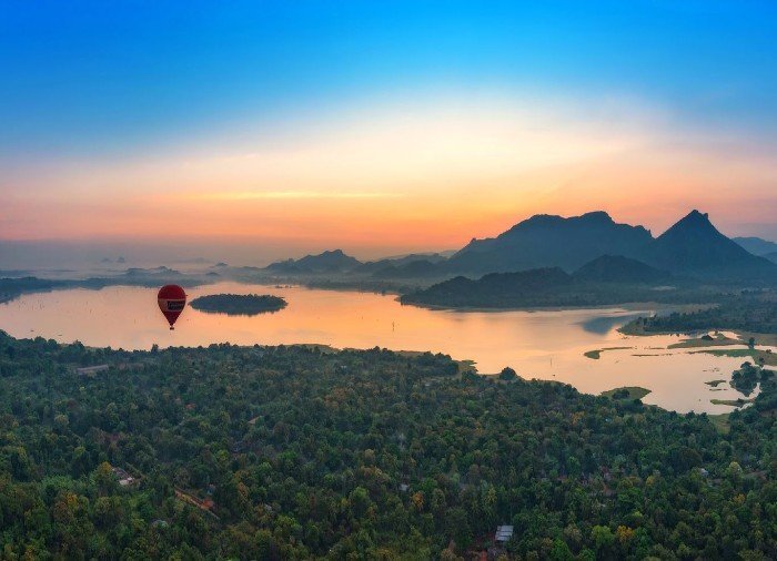 Du svävar ljudlöst över den Gyllene triangeln på 300–600 meters höjd. Bara ljudet av brännaren bryter stillheten då och då. Området är fullt med vacker natur, Unesco-attraktioner i alla riktningar och små lokala byar, där invånare i alla åldrar ropar god morgon och vinkar. Har du tur kan du även få se elefanter eller andra vilda djur, som strosar över det imponerande landskapet.