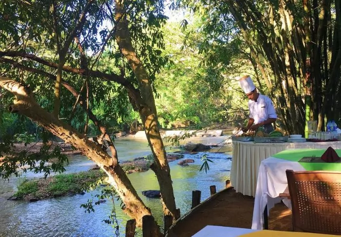 Athgiras huvudrestaurang ligger vid sidan om receptionen, men ibland dukas det upp nere vid floden så att du kan äta frukost och kvällsmat till flodens rogivande ljud. Oavsett var du äter kan du se fram emot Athgiras kulinariska upplevelser. Här står kockarna beredda med internationella och lankesiska specialiteter samt läckra grillrätter – allt tillagat med färska, lokala ingredienser.