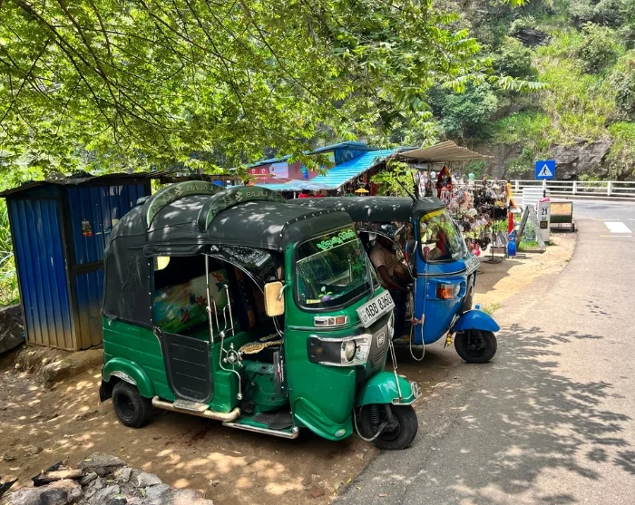 Första stoppet är Ravana Falls, ett av Sri Lankas bredaste och mest imponerande vattenfall. Här störtar vattnet 25 meter ner mellan klipporna och dånet är så kraftigt att ni nästan kan känna vattendropparna i luften. Enligt legenden bodde demonkung Ravana här och höll prinsessan Sitha gömd i en grotta bakom vattenfallet, en berättelse som verkligen sätter igång fantasin medan ni står och ser ut över de dånande kaskaderna.