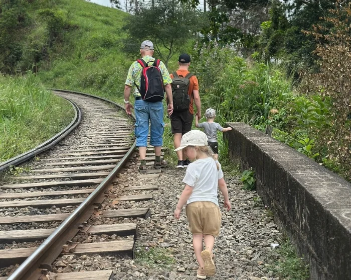 Längs brobanan kan du ha turen att få sällskap av små ödlor och färgglada fåglar, och om du har rätt timing får du uppleva hur ett tåg långsamt rullar över bron – ett magiskt ögonblick där brokonstruktionen, den frodiga naturen och Sri Lankas ikoniska tåg möts. Ett minne som garanterat blir ett av familjens favoriter från resan.