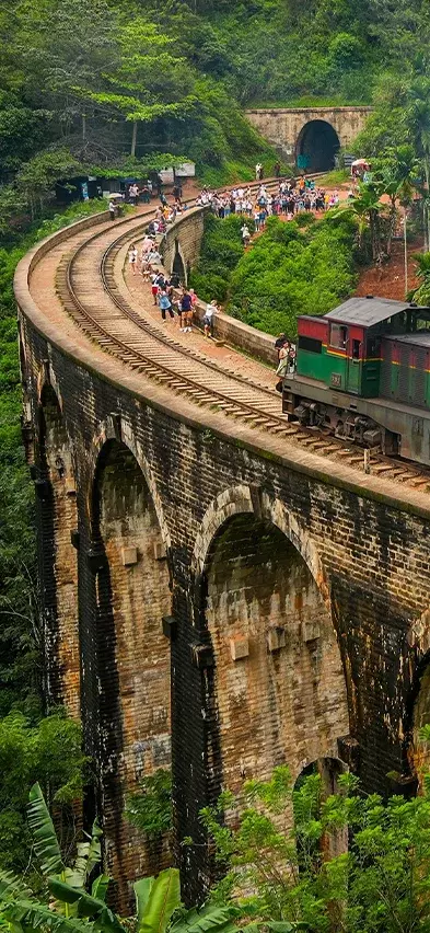 På vägen dit promenerar ni längs små stigar kantade av bananpalmer och tebuskar, och kanske får ni möjlighet att hälsa på barn som lever sina liv bland områdets många teplantager. Vid vägens slut väntar den nio-bågiga järnvägsbron, som med sina knappt 30 meters höjd står som ett arkitektoniskt mästerverk mitt i det frodiga landskapet.
