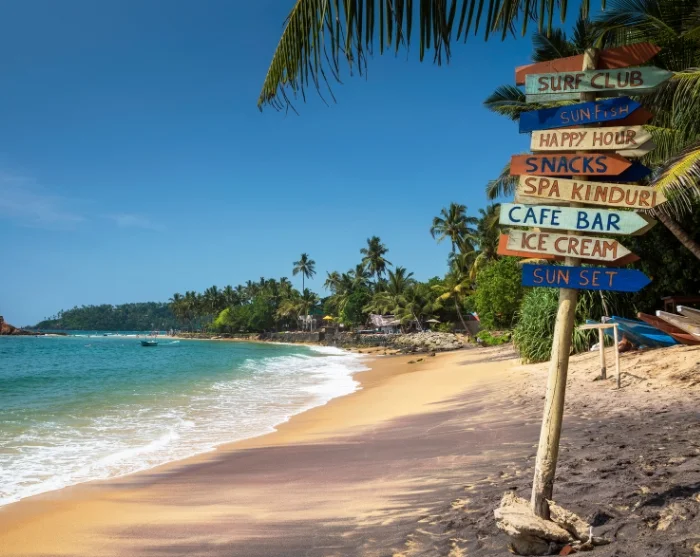Mirissa är relativt lugnt och består av tre små vikar med svajande kokospalmer längs de vackra, nästan paradisliknande stränderna. Trots att detta är en av Sri Lankas mest populära badorter råder det fortfarande en härlig, avslappnad atmosfär, där det är lätt att varva ner.