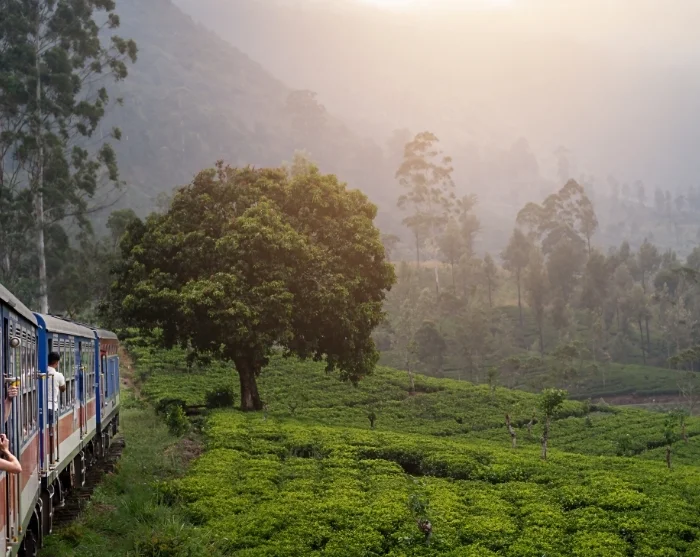 Här kliver du ombord på det klassiska tåget, som snart slingrar sig genom Sri Lankas gröna högland. Sätt dig bekvämt till rätta och njut av dina medtagna snacks medan tåget sakta tuffar genom mjuka kurvor och bjuder på vyer som gradvis vecklar ut sig – ljusgröna teplantager, dimhöljda bergstoppar och små byar där barn glatt ler och vinkar.