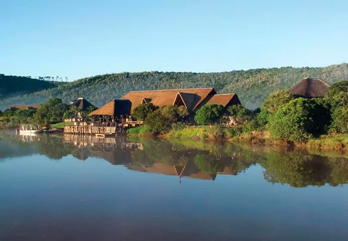 Den fyrstjärniga River Lodge ligger i Kariega Game Reserve på stranden av, ja nästan mitt i Bushman’s River. Lodgens restaurang, bar och swimmingpool ligger på ett sådant sätt att man nästan känner sig omgiven av flodens stilla, spegelblanka vatten. Lodgen har en helt unik utsiktsterrass som är byggd ut i floden och här kan man njuta en drink i solnedgången eller äta middag under en stjärnklar himmel. Lodgen och sviterna genomsyras av privatliv och är det perfekta stället med lugn och ro. Lodgen har 10 exklusiva stråtäckta lyxsviter som ligger utspridda längs flodbrädden. Sviterna är mycket rymliga och utsmyckade med afrikanskt konsthantverk. Alla sviter har en egen utsiktsbalkong, välutrustat badrum inkl. badkar, aircondition, takfläkt, Internet, säkerhetsbox och telefon.