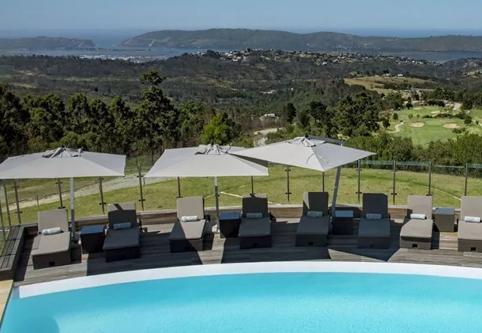 Det femstjärniga hotellet Simola Hotel Country Club har förmodligen den bästa utsikten av alla hotell i Knysna. Hotellet ligger på höga kullar lite utanför stadskärnan, och från hotellets restaurang har du den mest fantastiska utsikten mot lagunen och landskapet runt omkring dig. Vid sidan av hotellet ligger en av landets bästa golfbanor, och omgivningarna lockar till vandringar eller löpturer på de många stigarna runt omkring hotellet.