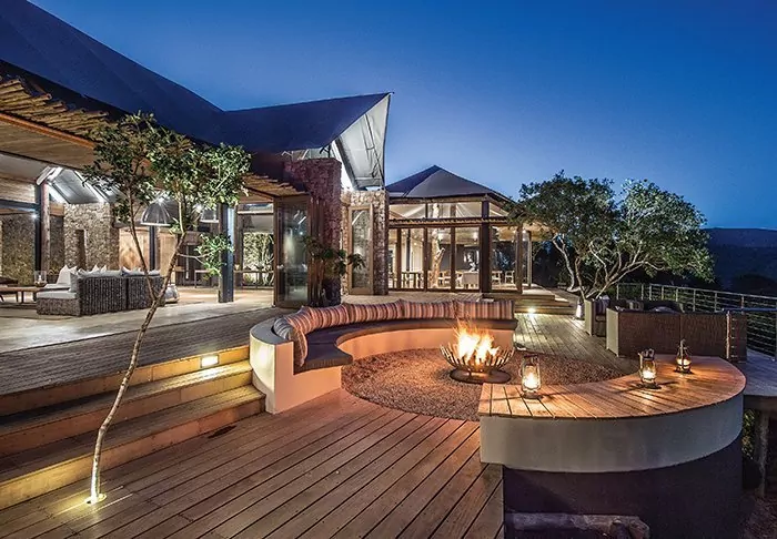 Hela lodgen är byggd på en lutning lite avsides i viltreservatet, vilket försäkrar avskildhet och obehindrad utsikt över naturen utanför.