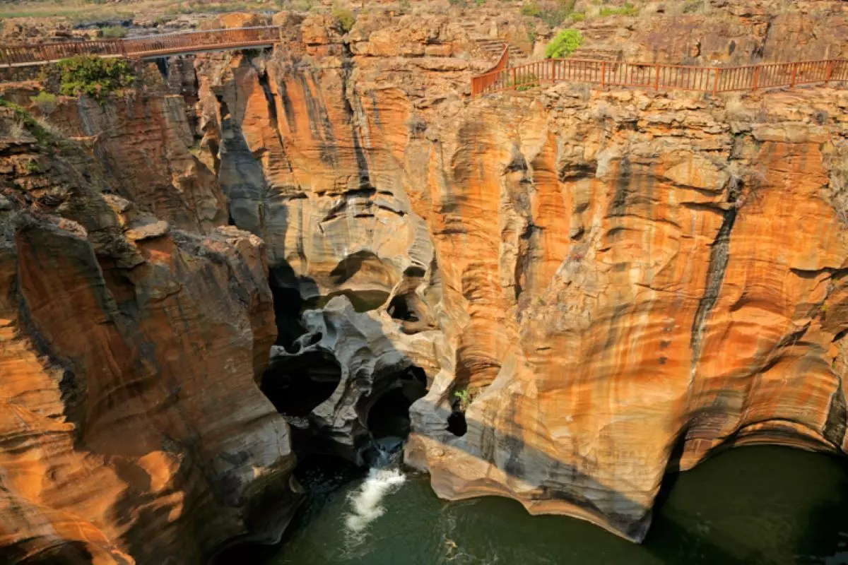 I dag ska du på en spektakulär heldagsutflykt längs panoramarutten i dramatiska Drakensberg. Bergskedjan är röd och ger en fantastisk kontrast till de gröna träden och växterna. Du upplever Blyde River Canyon som är upp mot 700 m djup och 60 km lång och därmed världens tredje största canyon. Du stannar vid de tre viktigaste utsiktspunkterna längs klyftan: God’s Window, Bourke’s Luck Potholes och de tre rondavellerna. De tre rondavellerna är tre mycket vackra och distinkta klippformationer som påminner om de runda hyddorna som tidigare fanns i lokala byar i många delar av södra Afrika. Det finns också många vattenfall på panoramarutten och du stannar vid ett av dem. Det kan till exempel vara Berlin Falls där vattnet faller 150 m ner i en sjö. Stoppet kan även ske vid Lisbon Falls som ligger vid punkten där Blyde River delar sig i två och där faller vattnet 92 m ner över en nästintill lodrät klippa och samlas igen till ett vattenflöde. Det finns många andra vattenfall och guiden bestämmer var stoppet kommer att ske. Ett av dagens mest spektakulära besök kommer helt klart att vara Bourke’s Luck Potholes, cylindriska hål som har slipats ner i klipporna av vatten och sand i tusentals år. Du kan komma nära detta naturfenomen längs vissa broar som är byggda över de säregna hålen.