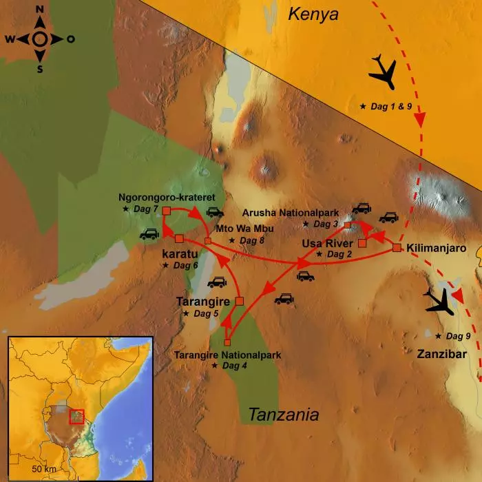 I dag ankommer ni till Kilimanjaro i Tanzania. Vår lokala guide möter er på flygplatsen och kör er till ert hotell, där ni har två övernattningar. Resten av dagen tillbringar ni som ni vill och vänjer er vid Afrika, kanske med ett dopp i poolen?
