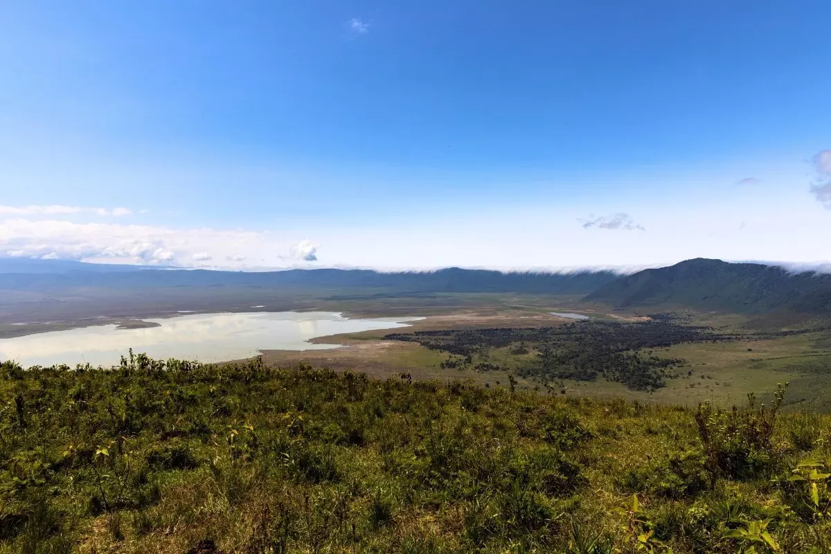Elefanter, zebror, gnuer, bufflar, lejon, flamingor, flodhästar, antiloper, storkar, hyenor, sjakaler – och den utrotningshotade svarta noshörningen. Själva kraterbotten är flat, 260 kvadratmeter stor och över er tornar kraterkanten sig 600 meter upp. Det känns som om ni är på botten av världen, men kraterbotten ligger faktiskt 2 000 meter över havsytan.