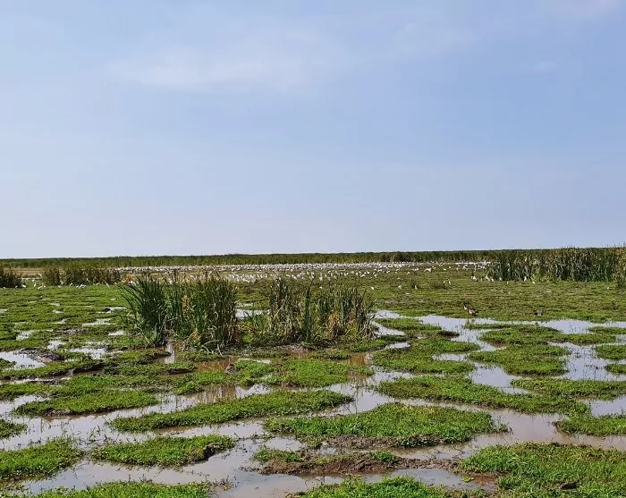 Manyarasjön är en sodasjö och vattenståndet varierar kraftigt beroende om det är regnperiod eller torrperiod. Längs sjöns bredd kan man ha tur att få se stora flockar av flamingor.