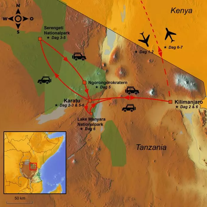 På den här resan får du uppleva de viktigaste höjdpunkterna på en safariresa i Tanzania: Safari i Serengeti, Ngorongoro Crater, Ngorongoro Conservation Area och Lake Manyara Nationalpark. Här har du möjlighet att se alla Afrikas ikoniska djur på en kort och intensiv safariresa. Du får prova att bo på både hotell och på en tältcamping där du lever tätt inpå Afrikas storslagna natur. Tälten har riktiga sängar samt eget badrum och toalett. Det kommer att bli en höjdpunkt på din resa.
