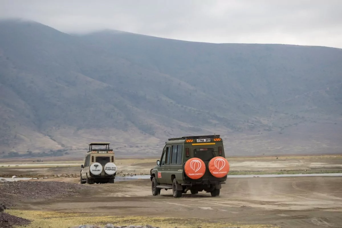 Efter ingången till Ngorongoro kör man först igenom ett frodigt regnskogsområde innan färden ner längs insidan av kratern börjar. Efter en spännande bilfärd kommer man till den 260 km2 stora kraterbotten. 600 meter ovanför dig tornar kraterkanten upp sig hela vägen runt. Även om du nu befinner dig på kraterbottnen är du egentligen högt upp, eftersom kraterkanten ligger 2 200 meter ovanför havsytan.