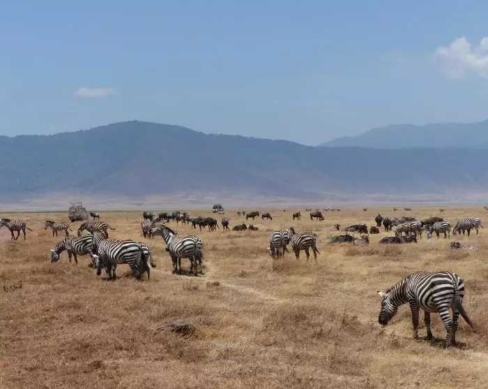 Från Serengeti går turen vidare mot Ngorongorokratern. Du åker i bil, så det känns om att du är på en lång game drive hela dagen.