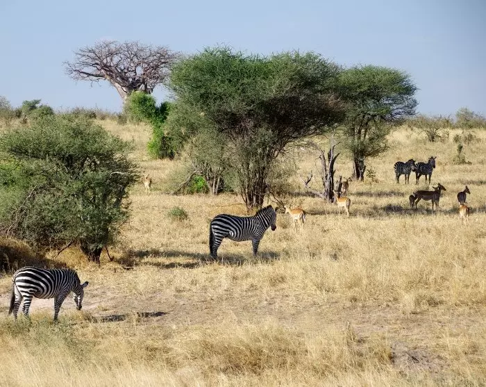 Vid ankomsten till den lokala landningsbanan kommer du återigen att mötas av en guide som kör dig till din lodge, där du kommer att bo under de kommande tre nätterna. Du kommer förmodligen att märka att luften är torrare här än i Nyerere, och värmen kommer antagligen att kännas mer bekväm. Med lite tur kommer du att få se de första djuren på vägen till lodgen, men många djur söker skugga mitt på dagen, när solen står som högst på himlen.