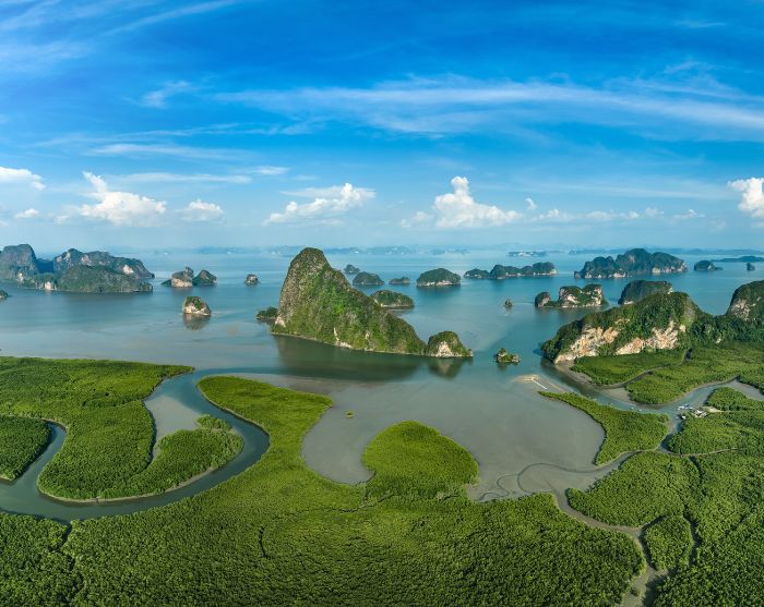 I dag tillbringar du dagen vid den vackra Phang Nga-bukten, som ligger mellan Phuket och Thailands fastland. Det är en av de vackraste bukterna i hela Thailand. Kalkstensklippor reser sig lodrätt upp ur det klara, blågröna vattnet – på vissa ställen helt kala och på andra övervuxna med buskar och träd, som är hem åt både apor, varaner och massor av fåglar.