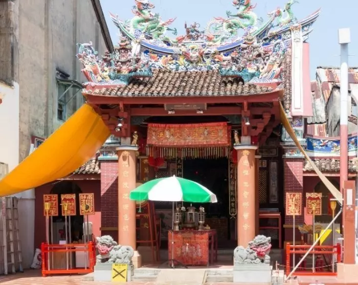 Promenaden börjar i hjärtat av Phuket Old Town vid Shrine of the Serene Light, mer känt som Sang Tham Shrine. Här berättar guiden om templets betydelse för de många thaikinesiska invånarna.