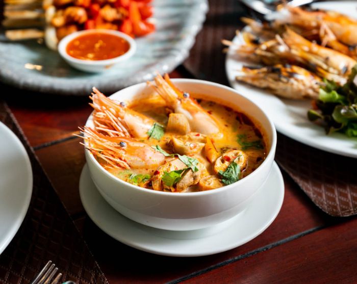 När mörkret faller på serveras en välsmakande buffémiddag bestående av rätter från både det thailändska och det västerländska köket medan du underhålls av livemusik.