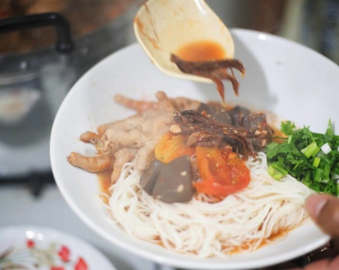 Börjar du bli lite hungrig? Resan går vidare till det första matstoppet, där du smakar på khanom chin. Denna maträtt med färska, tunna risnudlar är ett absolut måste att äta när du är i södra Thailand. Lokalborna äter gärna denna rätt med en egenvald currypasta. Toppa rätten med färska kryddor och grönsaker. Det är helt upp till dig vad du vill stoppa i den och hur stark du vill ha den.