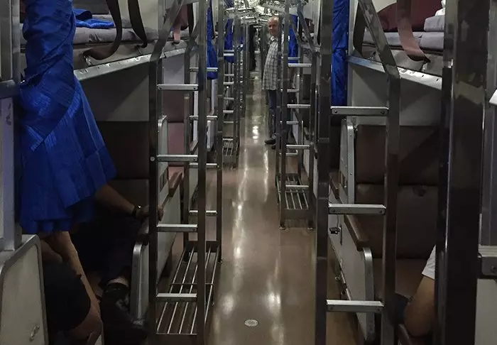 Tågvagnarna är välskötta och bekväma. En liggvagn består av en rad avskärmade avdelningar – alltså inte en kupé i ordets vanliga bemärkelse. När du vill sova kommer konduktören och ändrar ditt säte till en liggplats och drar för en gardin så att du kan sova ostört. Alla liggplatser iordningsställs med lakan, kuddvar och en matta i ren och nytvättad bomull. Du förvarar ditt bagage vid din liggplats.