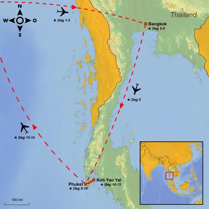 Se fram emot storstadsliv i Bangkok, upplev livlig östämning på Phuket och gå ner i varv på den lugna och charmiga ön Koh Yao Yai i Phang Nga-bukten.