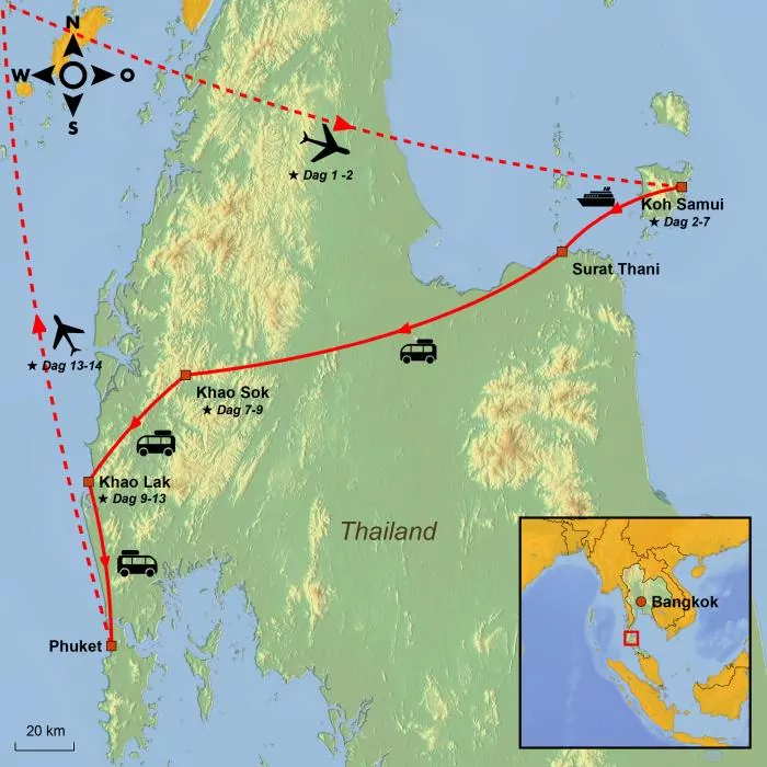 Resan startar på Thailands näst största ö, Koh Samui. Se fram emot en spännande örundtur, där du upplever Big Buddha, stenformationerna Hin Yai och Hin Ta samt ett av öns mest berömda vattenfall. Resten av dagarna på Koh Samui är utan aktiviteter och du bestämmer själv om du vill slappna av eller spännande naturupplevelser som Ang Thong National Marine Park eller dykparadiset Koh Tao.