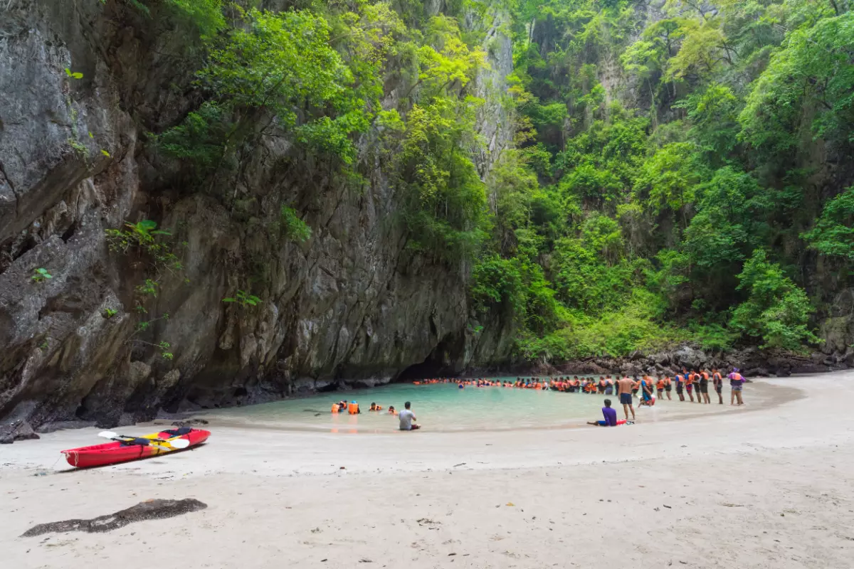 Det fina med Koh Mook är att du kan njuta av stranden på båda sidor av ön. Om du känner för aktiviteter eller utflykter kan du skämma bort dig själv med massage, hyra en kajak eller besöka öns stora attraktion Smaragdgrottan, som bara kan nås från vattnet. Här simmar du cirka 80 meter genom en tunnel. Den enda ljuskällan är i princip självlysande fiskar. Grottan ligger mitt på ön och när du kommer in i den öppnas ett hemligt litet paradis med sandstrand, gröna träd och klippor.