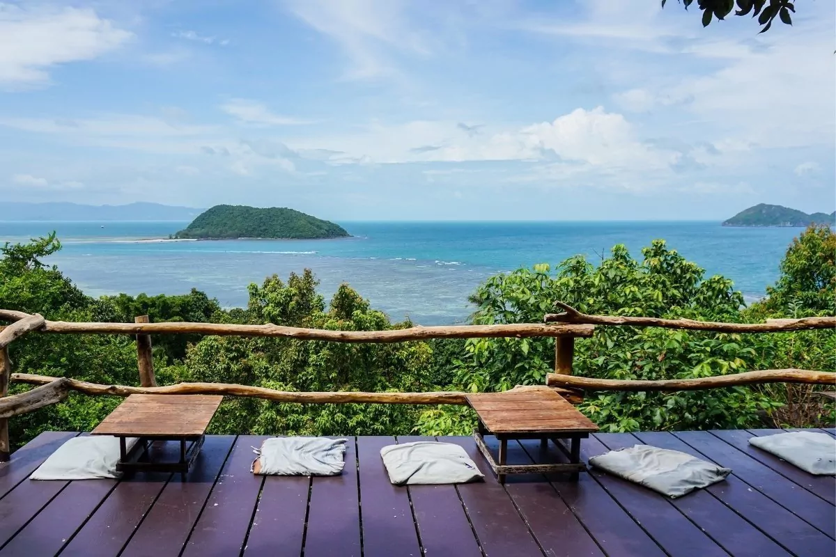 Du kan också välja att utforska ön på höjden med en vandringstur till toppen av Khao Ra-berget, där du belönas med en sagolik utsikt över öns regnskog, kokosplantager, klippor och bukter. I Mae Haad-bukten kan du vid lågvatten gå över till den lilla ön Koh Ma, där det finns goda möjligheter att snorkla bland färgglada fiskar.