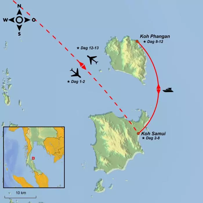 Du landar på Koh Samuis exotiska flygplats, passerar genom passkontrollen och hämtar ditt bagage. Din guide väntar utanför ankomsthallen, klädd i TourCompass-uniform och håller upp en TourCompass-skylt så att du enkelt kan hitta honom eller henne. Härifrån blir du körd till ditt hotell, som ligger på norra delen av ön vid den lugna viken Mae Nam-stranden.