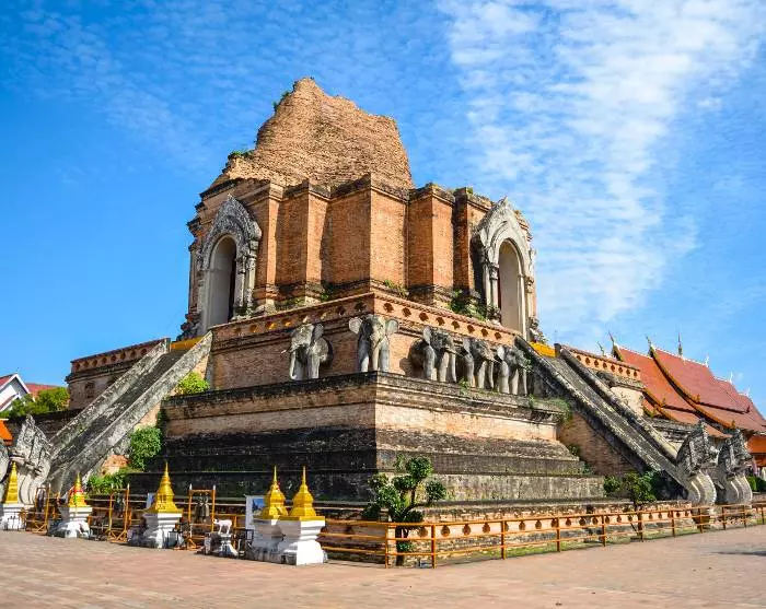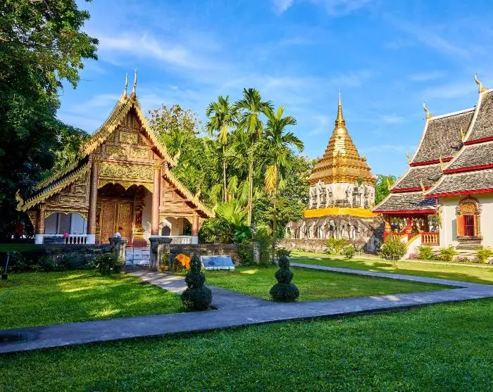 Du körs till vår samarbetspartners kontor, där du hämtar ut cykel och cykelhjälm. Efter en snabb genomgång är det dags att trampa iväg och uppleva stadens charm. Vägen är enkel och platt, så de flesta kan delta. Du cyklar genom Chiang Mais små och lugna gator till det fina templet Wat Inthakhin Sadue Mueang, som är känt för sin 700 år gamla, vita buddhastaty. Turen fortsätter förbi De tre kungarnas monument till stadsporten, Tha Phae Gate, där säljare förde in varor under stadens storhetstid. Här berättar guiden om Chiang Mais bakgrund som före detta handelscentrum. Du fortsätter till den närliggande marknaden Somphet, där du har tid att gå runt lite och uppleva den lokala stämningen. Du får också möjlighet att smaka på de färgglada frukterna och sötsakerna. Härefter väntar Chiang Mais äldsta tempel, Wat Chiang Man. Det är här som den 1 800 år gamla kristallbuddhan och den 2 500 år gamle marmorbuddhan förvaras. Till slut besöker du stadens största och ikoniska monument, Wat Chedi Luang, som en gång var hem åt smaragdbuddhan, som nu förvaras i templet Wat Phra Kaew i Bangkok.