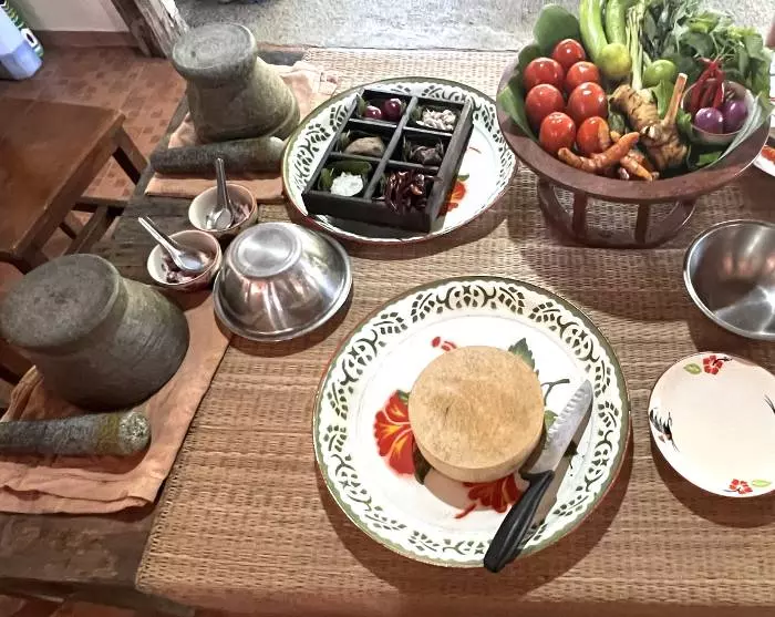 Sedan är det dags att kavla upp ärmarna och kasta dig ut i det traditionella köket, där maten tillagas med kärlek för de färska, lokala råvarorna. Du får först höra lite om de klassiska tillagningsmetoderna innan du ger dig i kast med att trolla fram läckra rätter bestående av både kött, grönsaker, ris och väldoftande kryddor. Slutligen kan du skörda frukterna av ditt arbete när du sätter tänderna i de fina smakupplevelserna på terrassen på den andra våningen, som bjuder på en härlig utsikt över den omkringliggande byn.