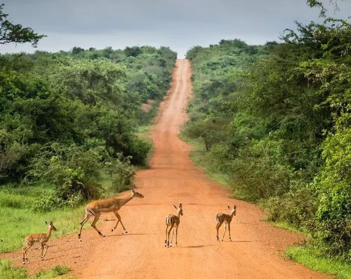 Följ med på en oförglömlig resa genom fem av Ugandas vackraste nationalparker, där brusande floder, tät regnskog och savannens vilda djur skapar ramen för äventyr för både vuxna och barn.