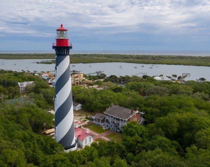 Avsluta dagen genom att besöka den randiga fyren på St Augustine Lighthouse & Maritime Museum, där du från toppen kan njuta av vacker utsikt över staden och havet.