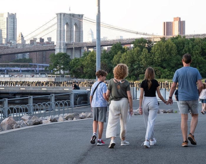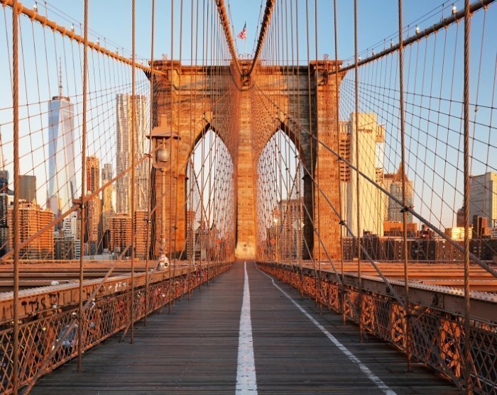 Från startpunkten kommer du och din grupp att åtföljas av er guide över Brooklyn Bridge, medan guiden berättar om brons fascinerande historia och med den fantastiska utsikten över Manhattan som bakgrund. På andra sidan bron kommer ni till DUMBO-området, där du kan uppleva kajområdet och se Brooklyn Bridge från en ny vinkel. DUMBO-området är känt för sin strandpromenad längs East River och dess charmiga stämning med massor av designers, konstnärer, specialbutiker och fantastiska matställen. Till slut når promenaden Brooklyn Bridge Park, varefter du kan fortsätta utforska området på egen hand.