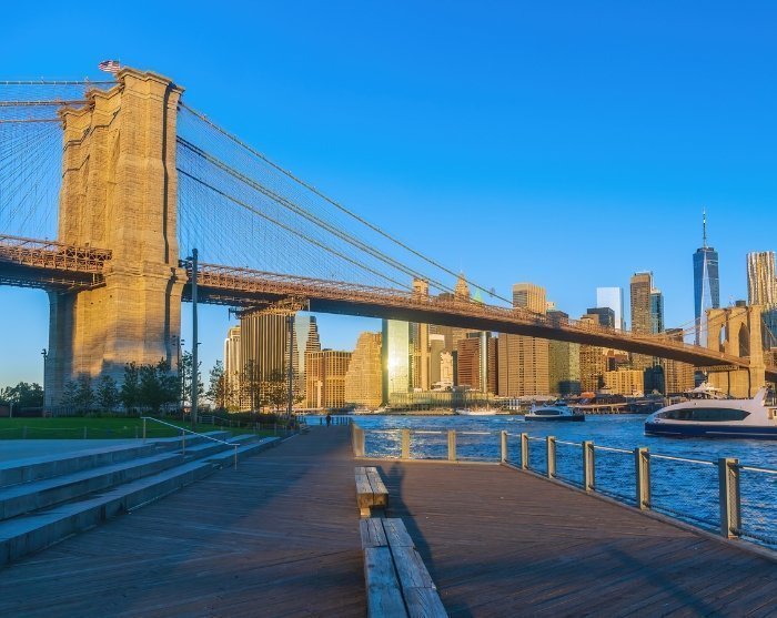 Följ med på denna promenad och upptäck ikoniska Brooklyn Bridge och det trendiga DUMBO-kvarteret. DUMBO är en förkortning för Down Under the Manhattan Bridge Overpass och ligger i området mellan Manhattan Bridge och Brooklyn Bridge. Under denna spännande promenad kommer du att lära dig om broarnas historia, medan du tar in den fantastiska utsikten över Manhattans skyline.
