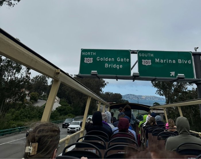 Missa inte att åka över Golden Gate Bridge, där bussen stannar vid en känd utsiktspunkt. Om du sitter på övre däck på den öppna dubbeldäckaren kan du se fram emot att känna Stilla havets friska vind mot ditt ansikte när du ser den enorma konstruktionen av stålbron passera ovanför huvudet. Från utsiktsplatsen har du fantastisk utsikt över den ikoniska Röda bron och San Francisco Bay med stadens takåsar och Alcatraz i bakgrunden.