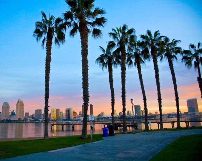 På väg tillbaka till fastlandet bjuds du på en fantastisk vacker utsikt över Downtown San Diego.